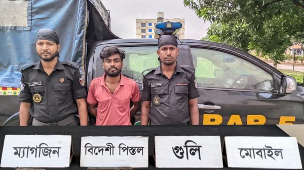 দুর্গাপুর প্রতিনিধি : গোপন সংবাদের ভিত্তিতে অভিযান চালিয়ে বিদেশি পিস্তল, ম্যাগাজিন ও গুলিসহ রাজশাহীর দুর্গাপুর উপজেলার জয়নগর ইউনিয়ন থেকে শরিফুল ইসলাম (৩০) নামের এক সন্ত্রাসীকে গ্রেপ্তার করেছে র্যাব-৫। বৃহস্পতিবার (১৯ ...বিস্তারিত পড়ুন