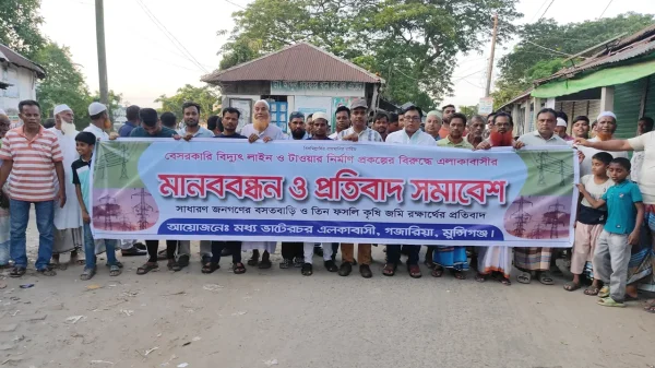 গজারিয়া (মুন্সীগঞ্জ) প্রতিনিধি : মুন্সীগঞ্জের গজারিয়া উপজেলায় তিন ফসলি জমি ও বসতবাড়ির ওপর দিয়ে বিদ্যুৎ সঞ্চালন লাইন এবং টাওয়ার নির্মাণের প্রতিবাদে মানববন্ধন ও বিক্ষোভ করেছেন স্থানীয়রা। শুক্রবার বিকেলে উপজেলার টেংগারচর ...বিস্তারিত পড়ুন