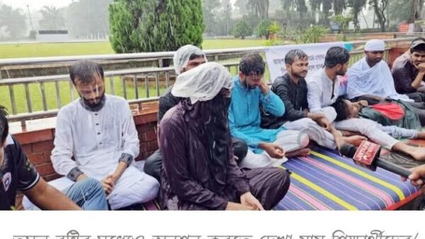 পোষ্য কোটা পুনর্বহালের প্রতিবাদ তুমুল বৃষ্টিতেও অনশনে শিক্ষার্থীরা