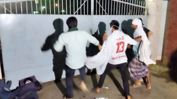 রাজশাহী বিশ্ববিদ্যালয়ে উপাচার্যের বাসভবনের গেট ভেঙে ভেতরে ঢোকার চেষ্টা শিক্ষার্থীদের